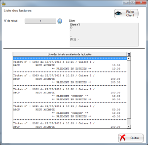 Sélectionner le menu “GESTION - Clients - liste factures” :  Cette fenêtre va s'afficher