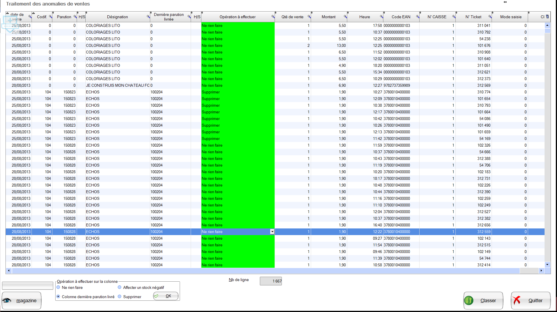 -Une anomalie peut se présenter sous plusieurs forme: article ventilé en caisse, mauvaise impression d'un code EAN de la part de l'éditeur, vente d'un numéro de parution n'ayant pas été le dernier livrée sous STORE-PRESSE, ou vente d'un numéro inconnu,etc…..