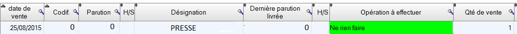-Dans cette exemple, la vente est issue d'une ventilation dans un département presse. Aucune information n'est renseigné concernant le magazine vendu, que ce soit sa parution ou même ça codif. Il est donc impossible de savoir quel est le stock à décrémenter. les seuls choix possible pour gérer cette anomalie sont :