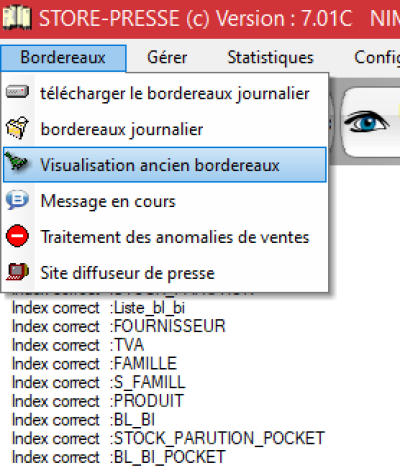 - Ensuite vous avez l’onglet “Bordereaux” et vous avez l’option “Visualisation ancien bordereau”