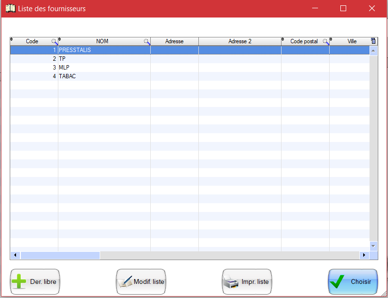 Vous pourrez “imprimer” la liste ou sélectionner un autre fournisseur à modifier ces informations.