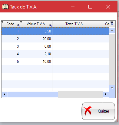 Dans ce menu vous allez retrouver la liste des TVA.