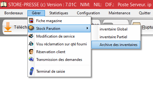 L'archive des inventaires permet de voir tous les inventaires de n'importe quelle date faite dans le rayon presse mais vous ne pourrez pas la modifier.