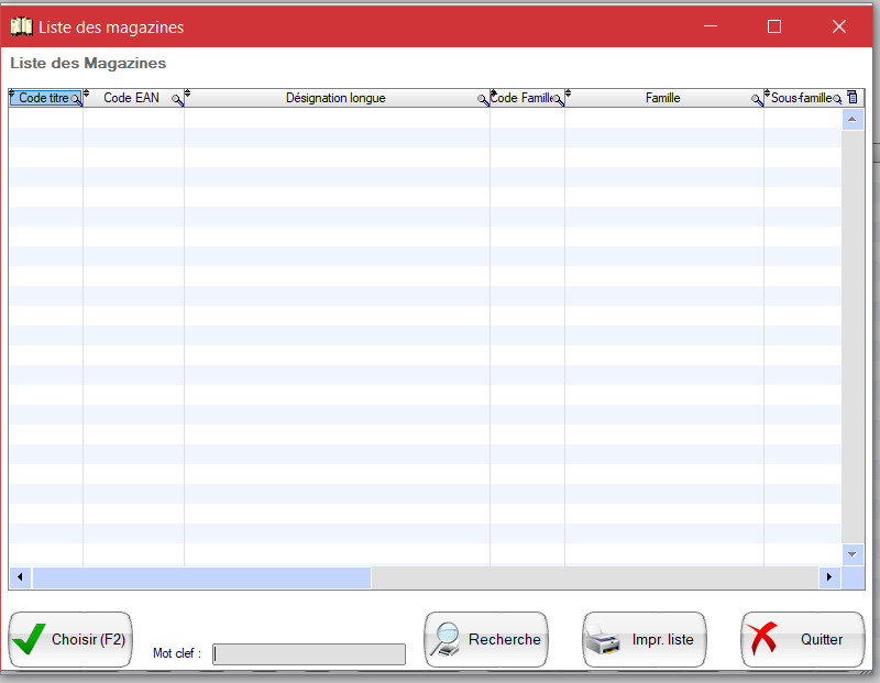 Vous allez avoir toutes infos affichée sur le tableau ci-dessus pour une parution choisie (famille, fournisseur, stock, date de retour, date de livraison, …)