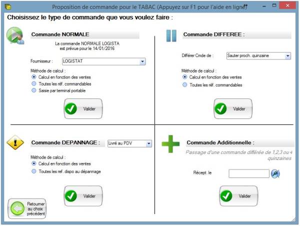 Cliquer sur commande tabac nous allons arriver sur la sélection du type de commande.