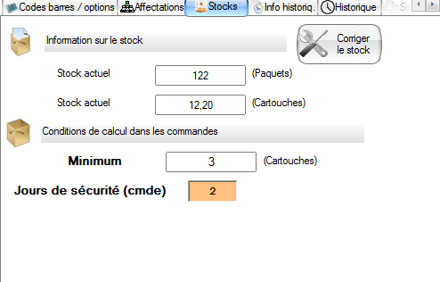 Vous pouvez également entrer des informations complémentaires tel un stock minimum et un nombre de jour de sécurité qui serviront à ajuster la proposition de commande et respecter ces deux critères supplémentaires propre à l'article.