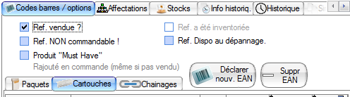 Vous trouverez en haut de cet onglet les divers statuts du produit dans votre point de vente (à initialiser vous-même en cochant ou décochant les cases.