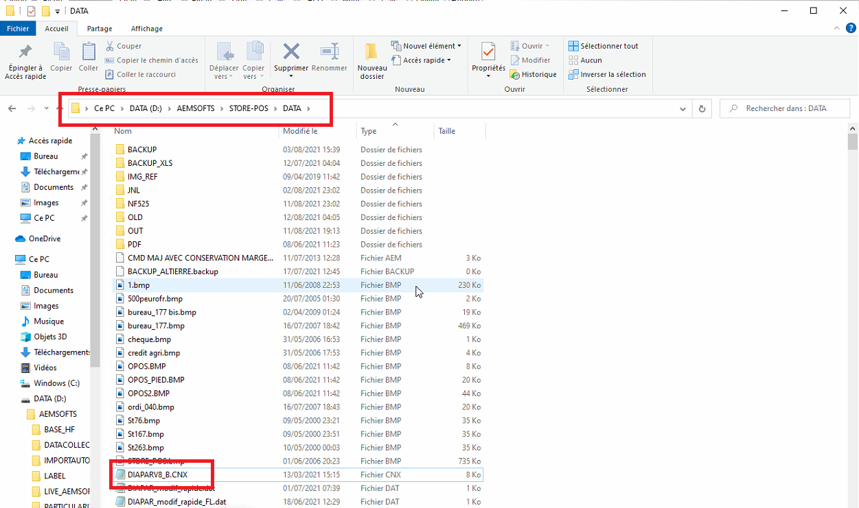 ===== ETAPE 1: VERIFIER LA PRESENCE DU FICHIER DIAPARV8.CNX DANS LE DATA DE STORE POS