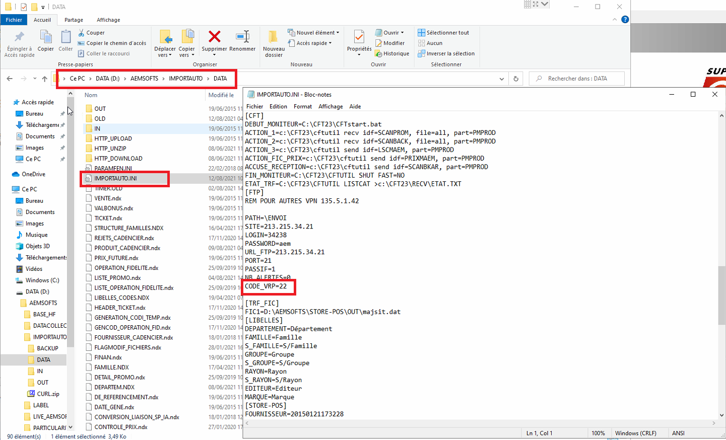 6- Vérifier le fichier IMPORTAUTO.INI sous \AEMSOFTS\IMPORTAUTO\DATA\