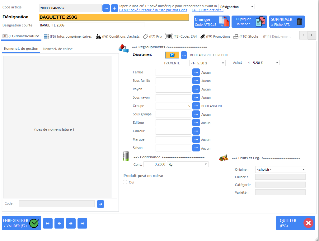 Ouvrir la fiche produit en cliquant sur « Gestion/ Articles/ Fiches des produit » comme indiqué ci-dessous :