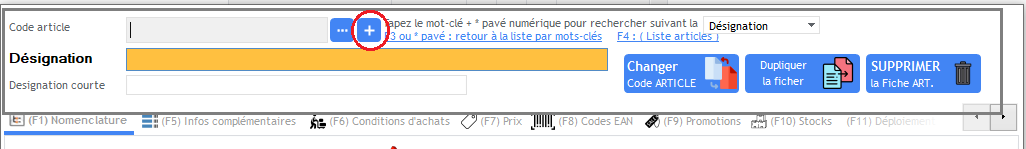 Vous pouvez ainsi taper le code EAN de l'article à créer dans le champ code article.