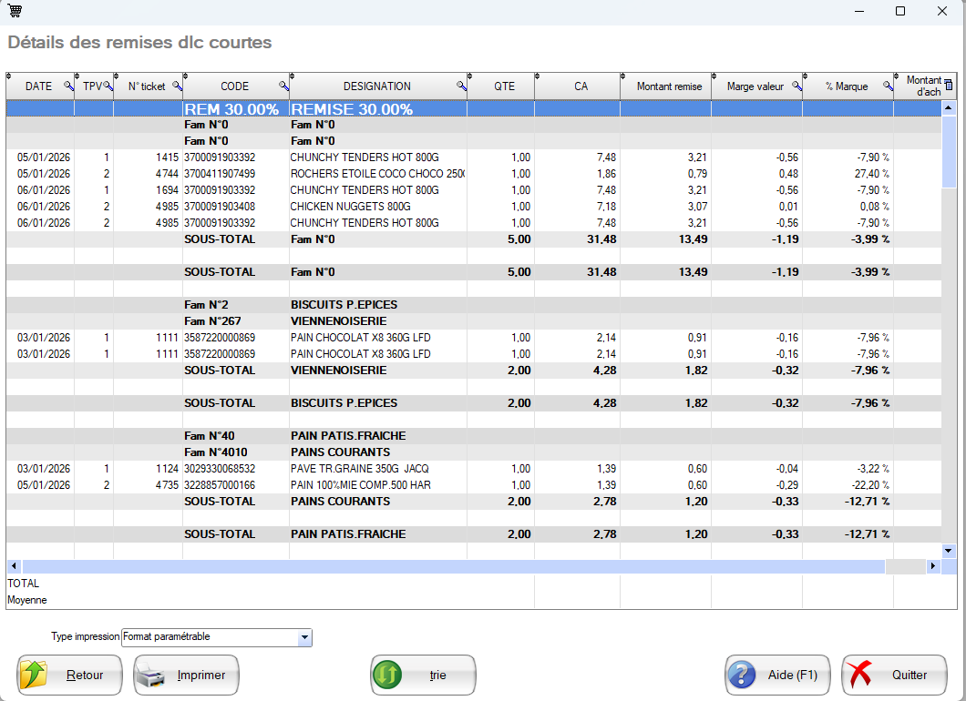 Pour accéder au menu, passez par l’onglet Statistiques → Résultats archivés → Analyse des prix bradés, comme ci-dessous.