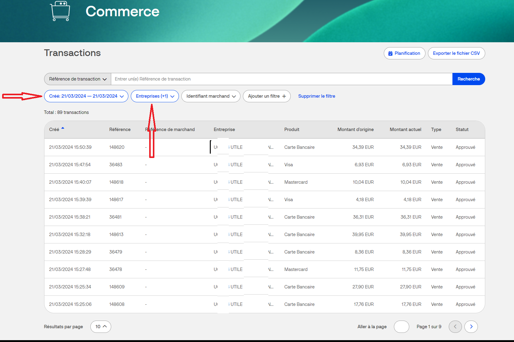 -Puis sélectionnez le créneaux à rechercher, ainsi que le magasin dans le cas, ou vous en possédez plusieurs, vous aurez le detail de toute les transaction passer, ou refuser, ainsi que le type de carte.