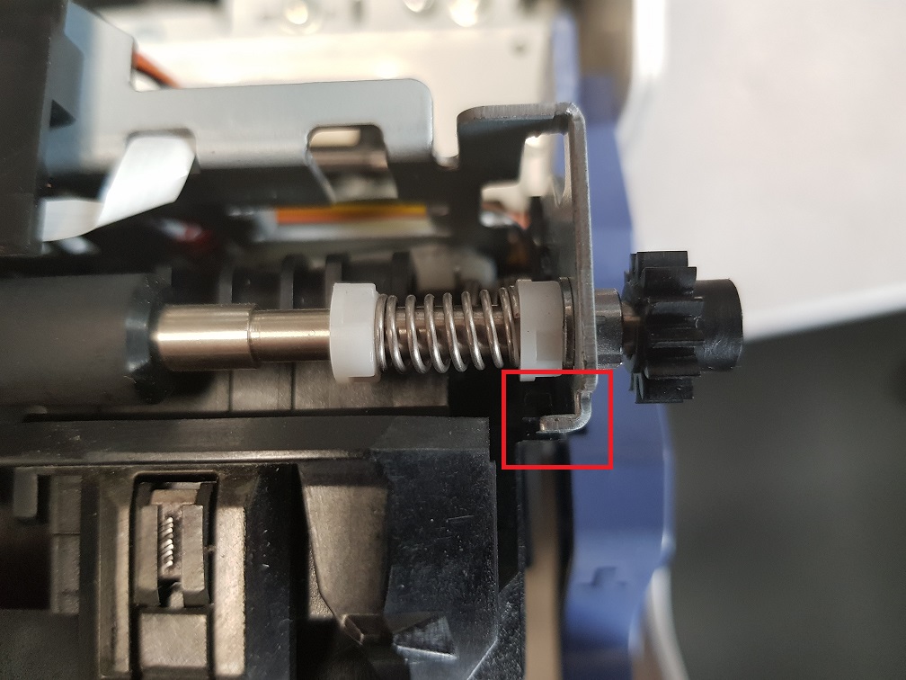 Photo de la tête d'impression avec MAUVAIS placement du ruban :