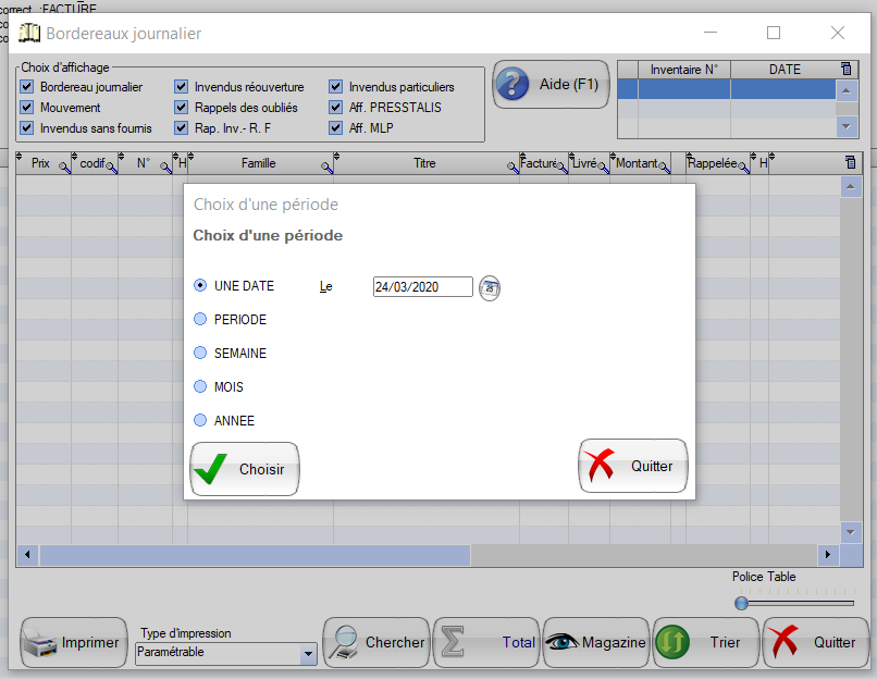 Visualisation ancien bordereau journalier
