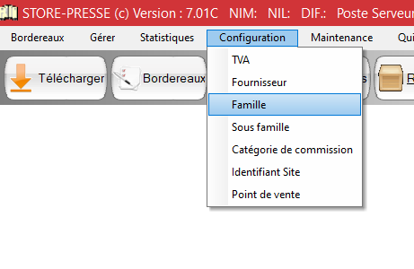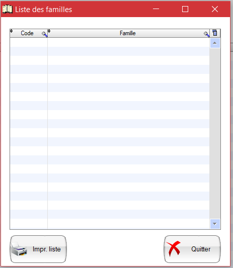 Dans ce menu vous pourrez accéder à la liste des familles des parutions.