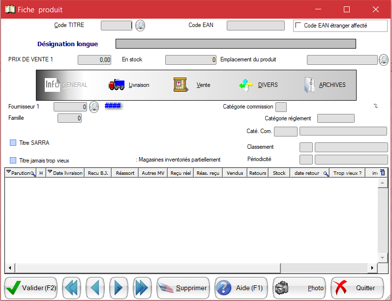En dessous vous allez avoir les différents onglets d'information : Général, Livraison, Vente, Divers, Archives: