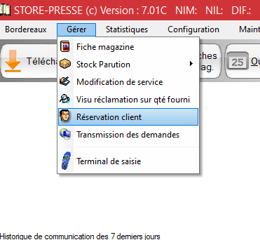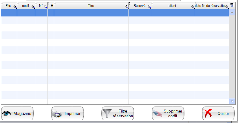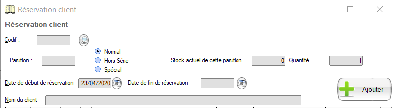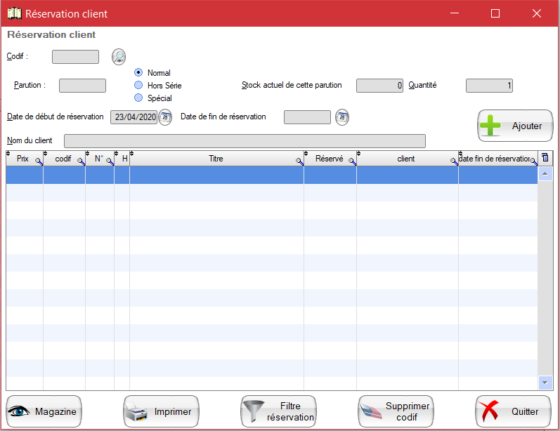 Dans ce menu vous aller pouvoir faire les réservations des parutions pour les clients.