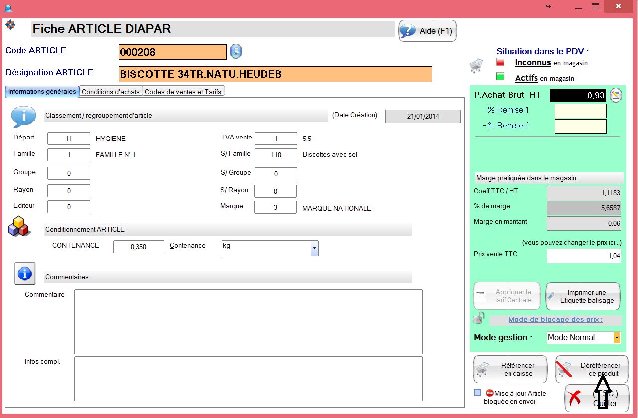 -Pour déréférencer un article la procédure est la même que le référencement sauf qu'il faudra venir cliquer sur déréférencer ce produit.