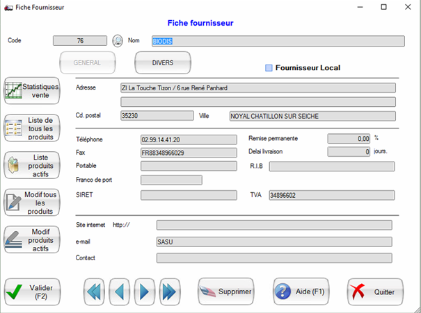 1- Sur Store Pos, il faut aller sur Gestion/Fournisseur/Fiche