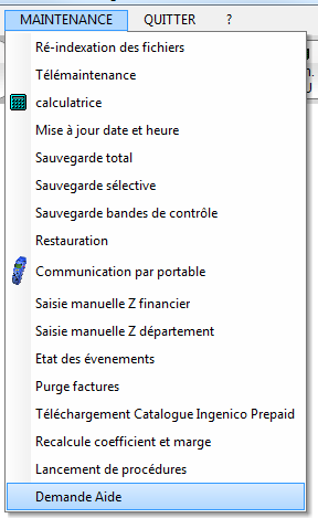 Pour envoyer un mail au support AEMSOFTS selectionnez le menu “MAINTENANCE - Demande Aide” : ou appuyez sur le bouton Support AEM Softs :