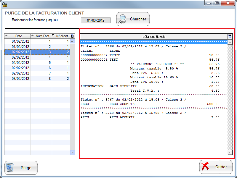 Purge des Factures