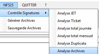 Pour lancer un contrôle des signatures fiscales sur vos données d'archives sélectionnez le menu