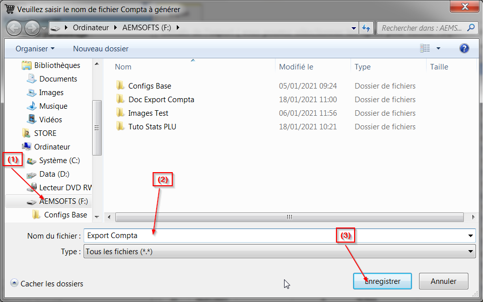 ACCES : Il est possible de créer depuis le logiciel Store-Pos via le le module “Export Comptabilité”, un fichier qui regroupe les écritures comptables générées par les données financières.