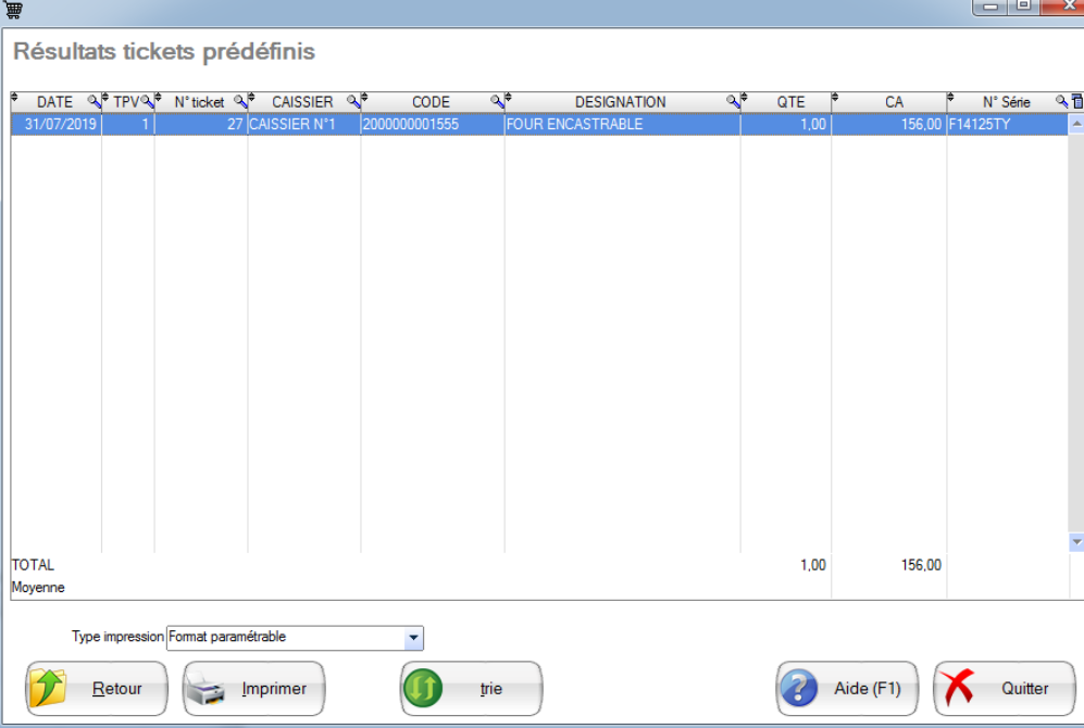 Cette statistique permet d'avoir les ventes a l'article vendu en caisse, sur une date, ou une période.
