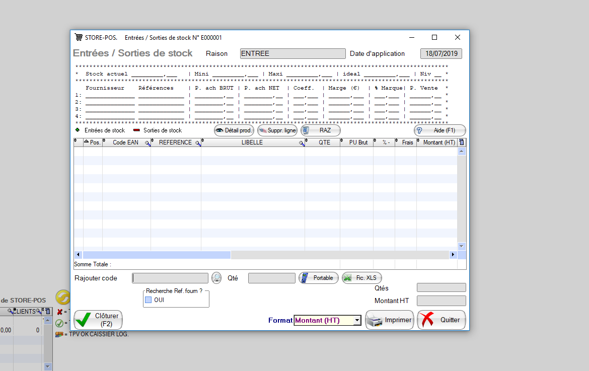 -Une fois les informations validées, ou F2, pour arriver sur la fenêtre de saisie (entrée, ou sortie).