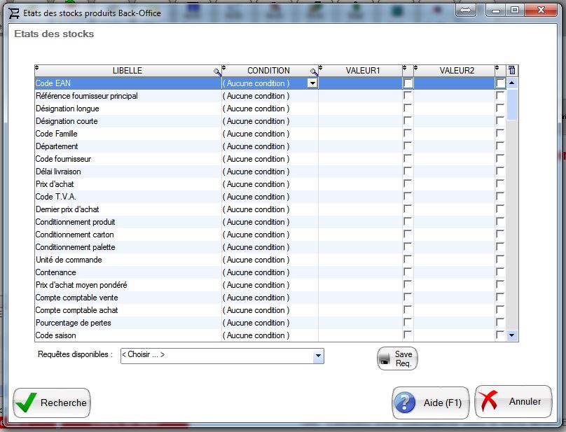 Pour avoir une état de stock il faut aller dans le menu suivant :