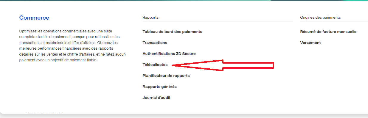 -Pour accéder aux télécollectes, toujours dans le menu commerce cliquez sur l'onglet télécollecte.
