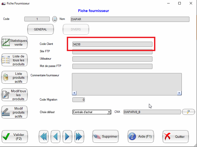1- Demander le numéro client DIAPAR sur 5 chiffres au magasin et code vrp